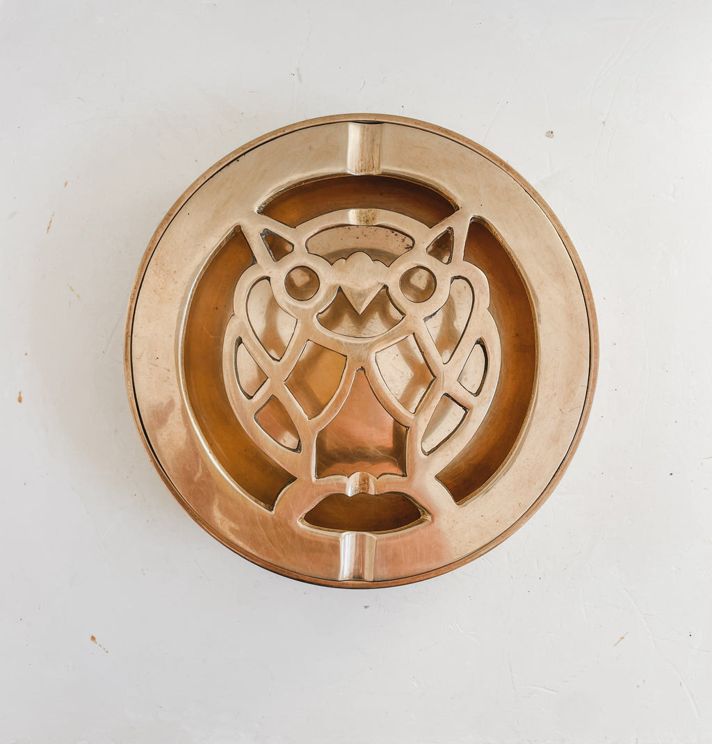 VINTAGE BRASS OWL ASHTRAY