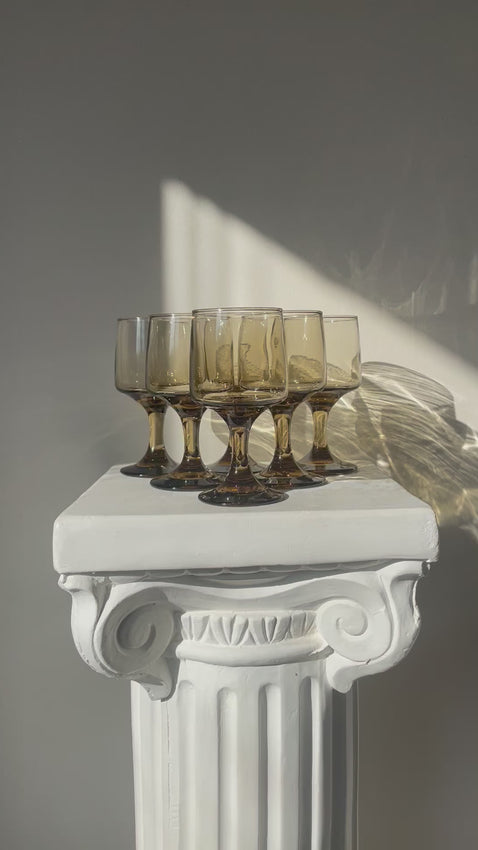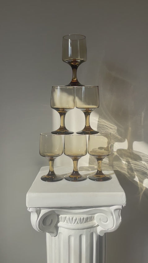 Vintage mid century Libbey ‘Tawny Accent’ smoked white wine glasses
