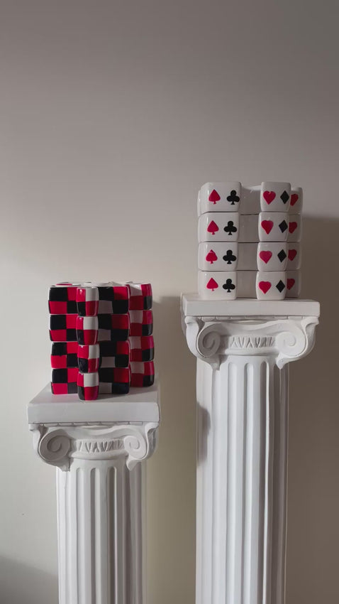 Vintage 80s/90s Roscher & Co by Fisher Home Products ceramic hand painted interlocking puzzle dishes. Casino style design in card suits and red and black check. Dishes are perfect size for appies or snacks and can be arranged in multiple configurations.