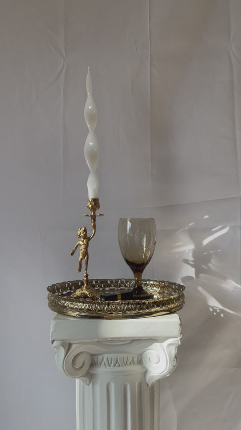 Presents as antiqued aesthetic. Good vintage condition. Small signs of wear consistent with age and use. Glass has some light scratches and age spots that are difficult to show in video. Filigree has some light tarnishing and age spots left original to preserve look.